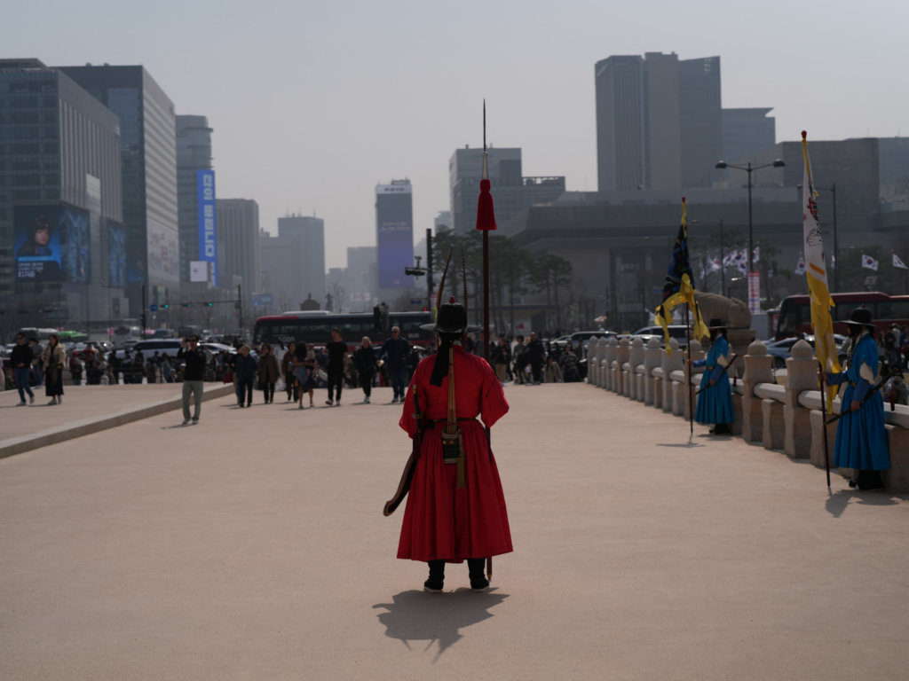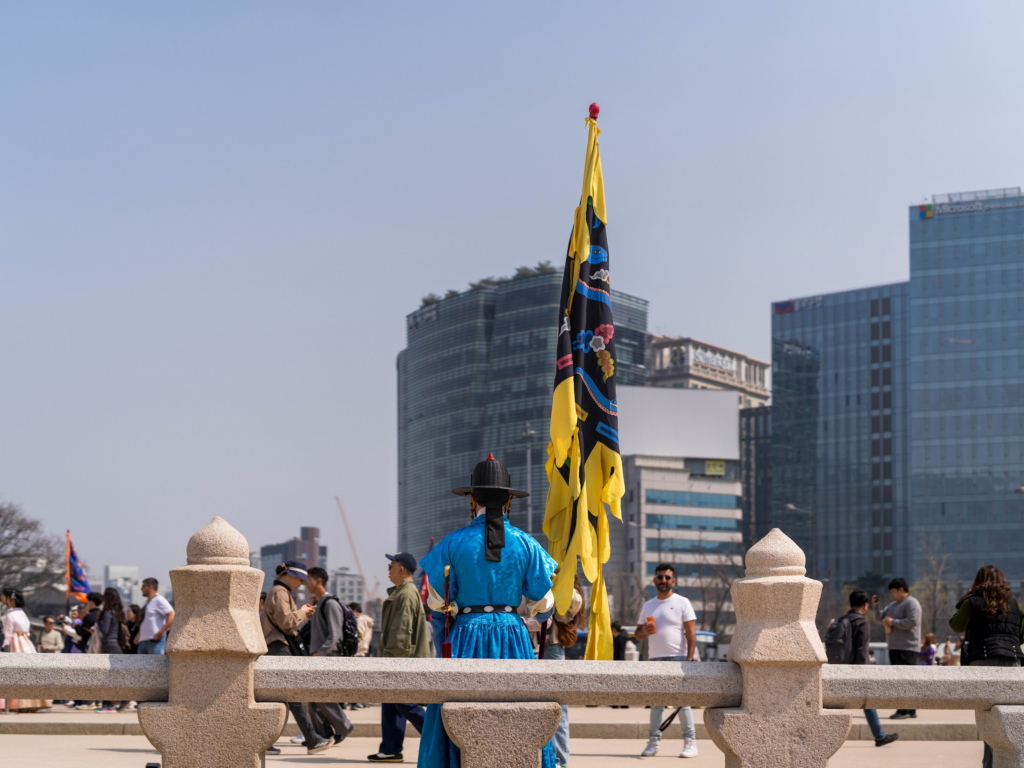 一人の演者が大きな農旗を持って広い広場を横切って歩く姿が印象的でした。旗が風にはためく後ろにマンションが見えて、伝統と現代が不思議に重なる光景になっていましたね。綱渡り、パンソリ、韓国舞踊、テッキョンの演武まで多彩な公演が続き、プロの公演団だけあってクオリティがかなり高かったです。
